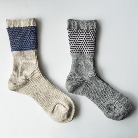 麻混で通気性がよく、程よいフィット感が心地よい靴下です。