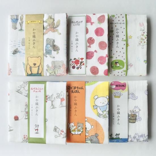 ロングセラーの絵本とコラボレーションし、親子で楽しみながらお使いいただける、かや織ふきんです。
