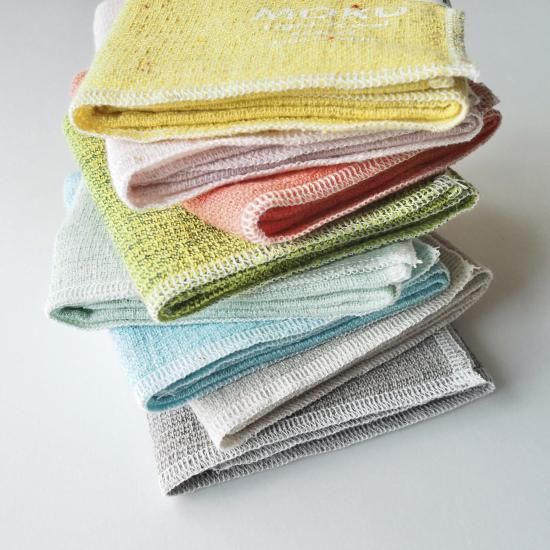 MOKUのハンカチは薄くて軽いだけではなく、片側がパイル素材なので吸水性にも優れています。